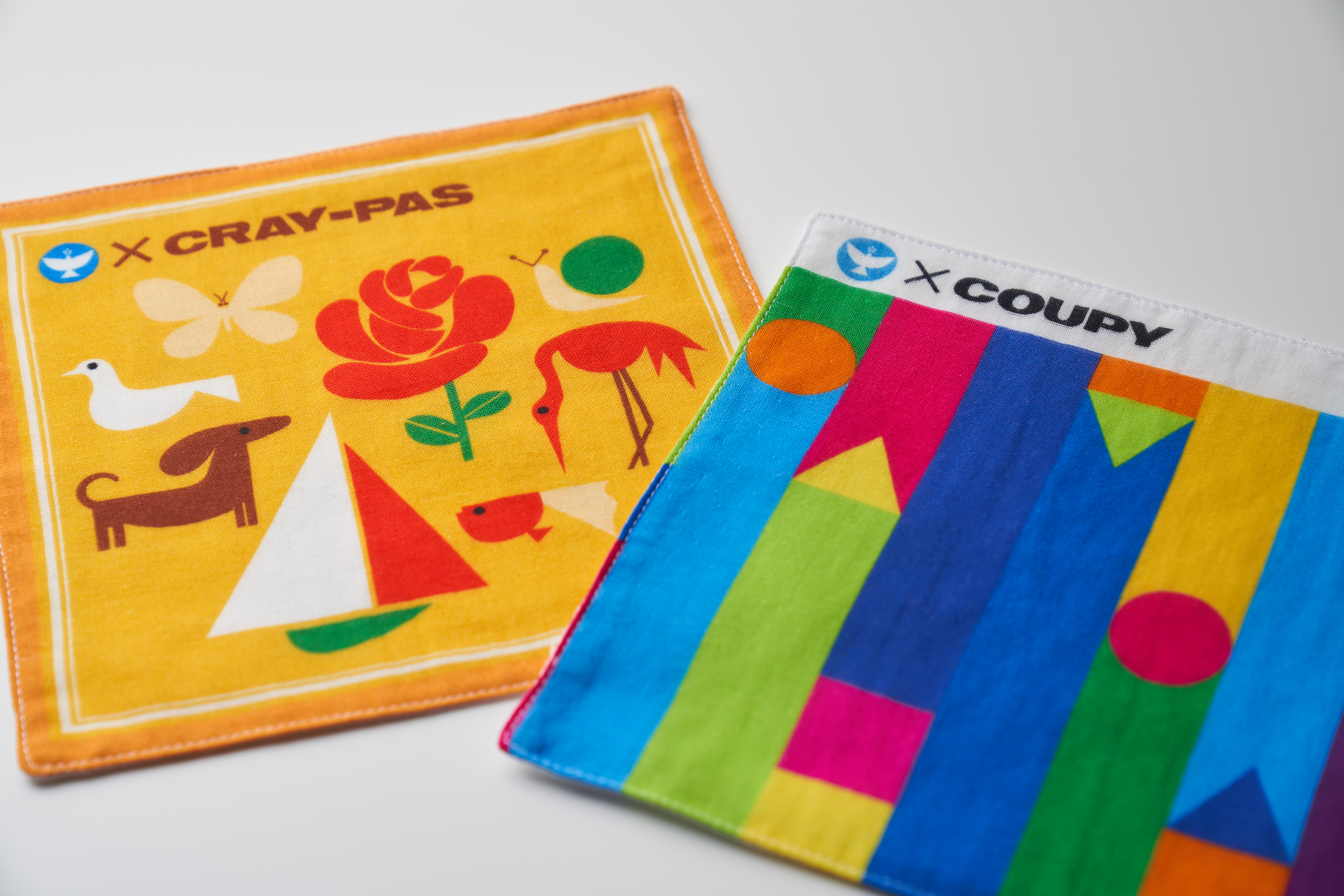 コットン100%のガーゼ素材のハンカチは、優しい感触で吸水力もバツグン!正方形の四つ折りなので、子どもの小さなポケットにもぴったりです。それぞれクレパスの柄が全面にプリントされており、インパクト大!ポケットから取り出すたびにワクワクするデザインで、ますます手を洗いたくなる生活に欠かせない一品です。